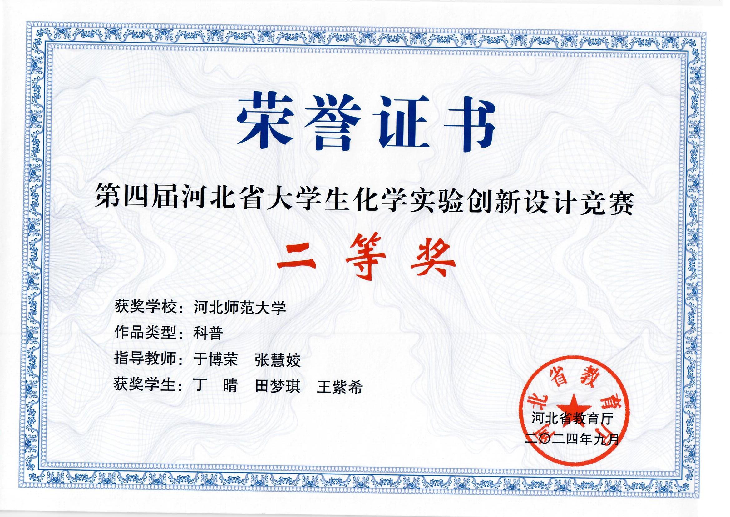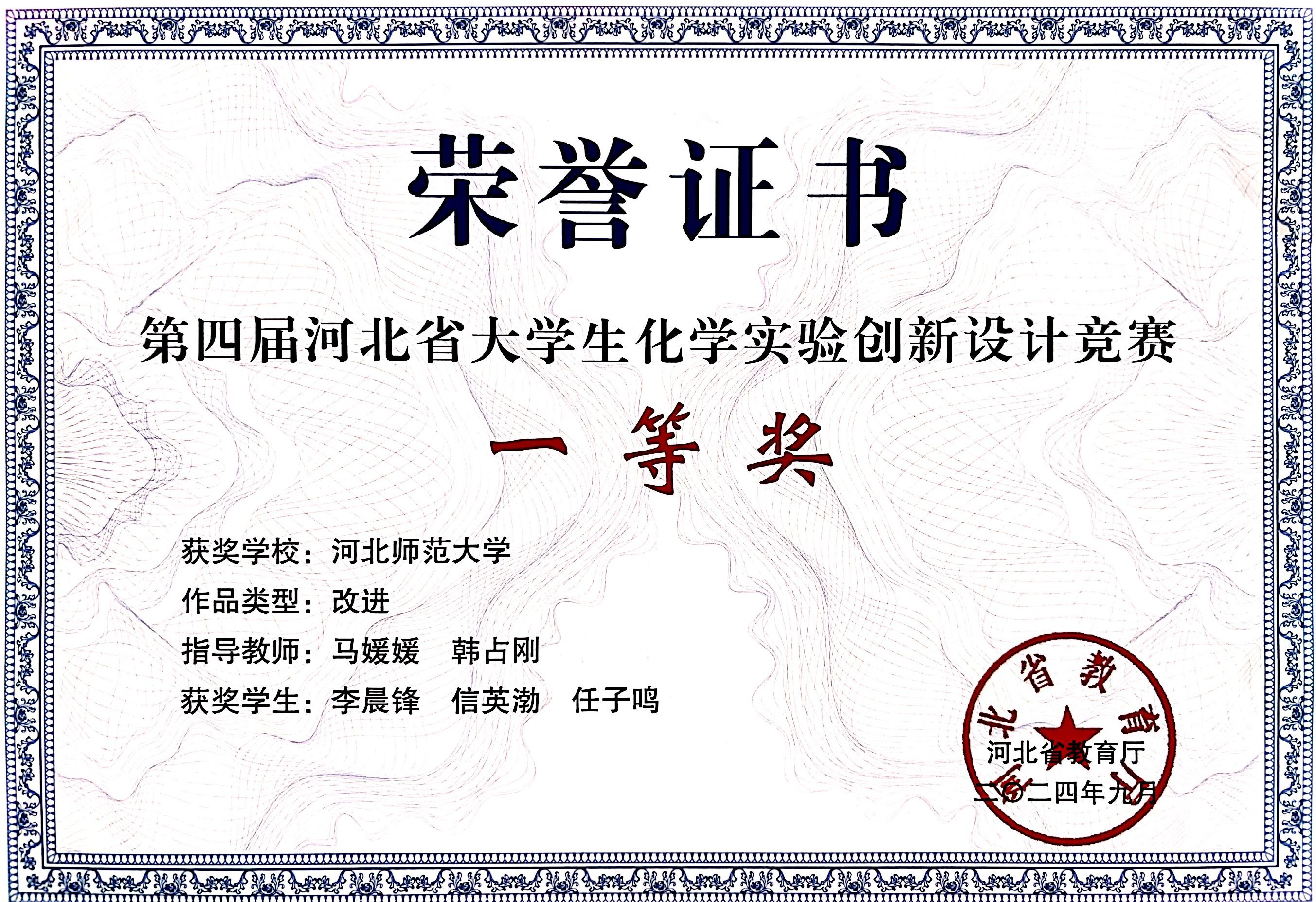 2024年6月21日至23日,第四届河北省大学生化学实验创新设计竞赛决赛在河北农业大学举行。我校william威廉英国参赛的两支队伍再获佳绩,李晨锋、信英渤和任子鸣学生团队荣获大赛一等奖,丁晴、田梦琪和王紫希学生团队荣获大赛二等奖。